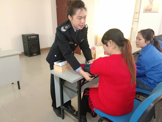 趙老師現(xiàn)場指導(dǎo)血壓計(jì)的使用方法