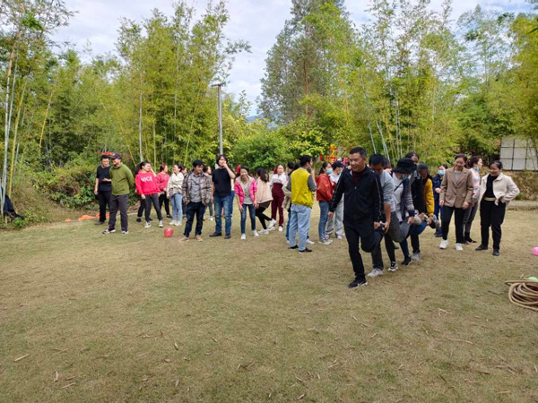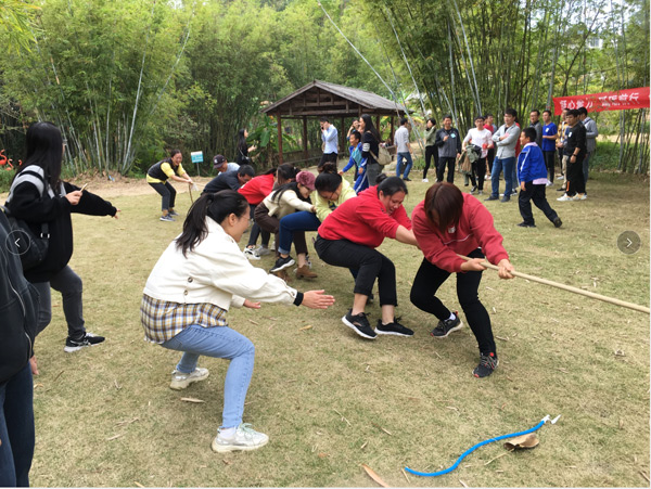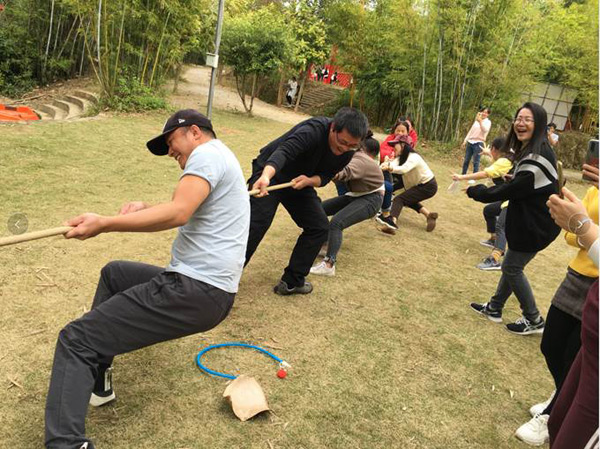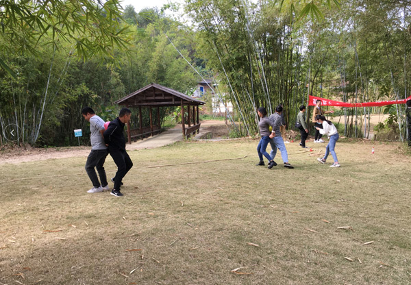 懷著激動的心情,經(jīng)過短暫的車程后,大家于10:00左右來到本次活動的目的地--長龍歡樂谷山莊。首先,分組進行了豐富多彩的體育運動,有六人單腳跳、運輸氣球、拔河等項目。在運動中,大家團結(jié)協(xié)作、歡聲笑語,平日里高強度的工作壓力被釋放一空;顒永送轮g的距離,更增強了集體榮譽感。
